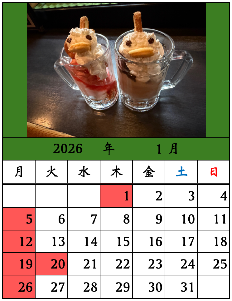 1月定休日のご案内
